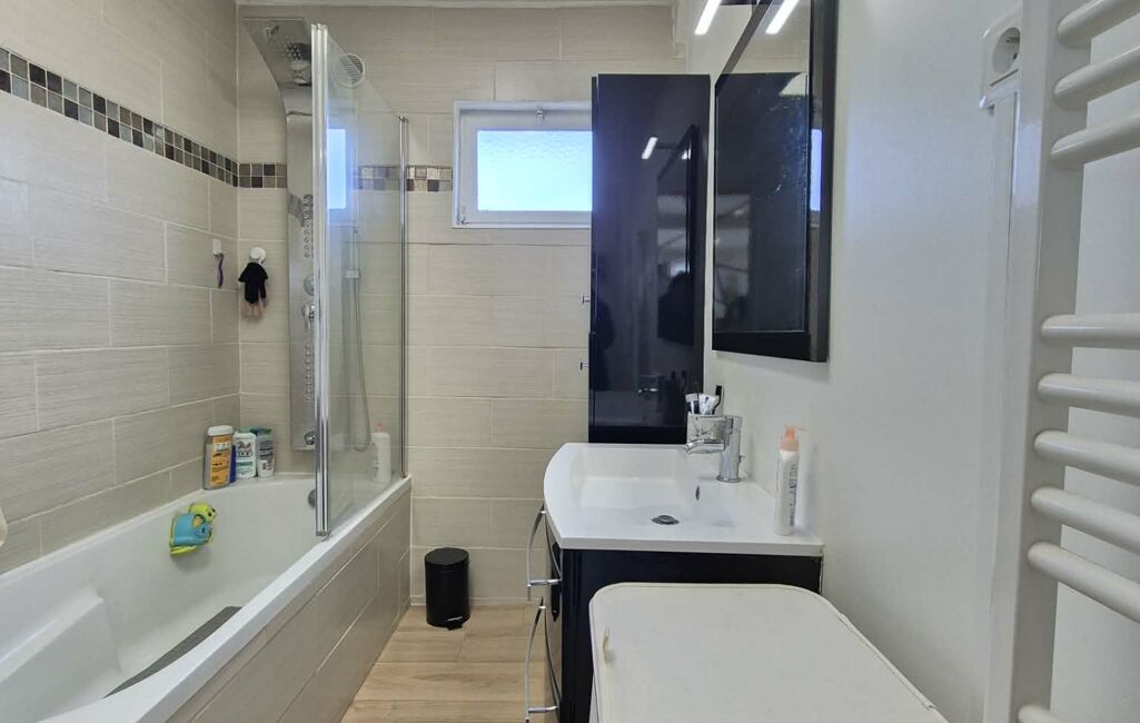 Una salle de bain avec baignoire