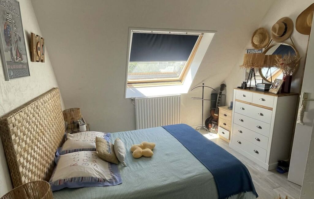 À l’étage, l’espace nuit se compose de deux chambres.
