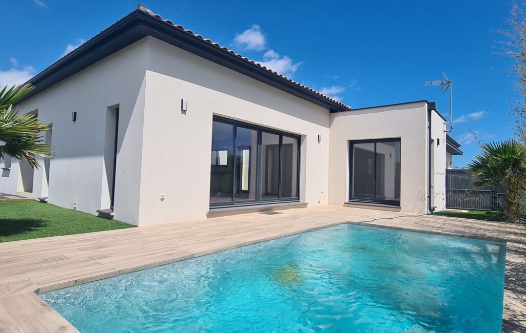 iad France - Stephane Da Ponte vous propose: À vendre à Sauvian - FRAIS DE NOTAIRE REDUITS : villa neuve de 2024, plain-pied, 3 faces, 115 m² sur un terrain de 351 m² avec piscine