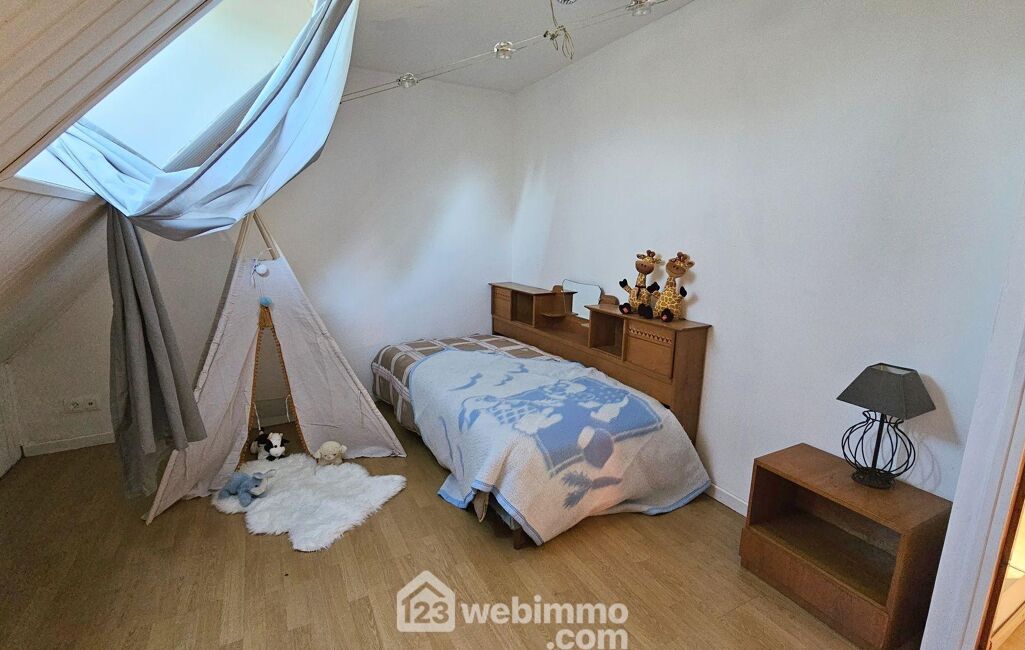 À l'étage, l'agencement se veut familial et évolutif. Une pièce centrale dessert trois chambres, une salle d'eau avec WC et un dressing, offrant à chacun son espace tout en conservant une belle cohérence de circulation.