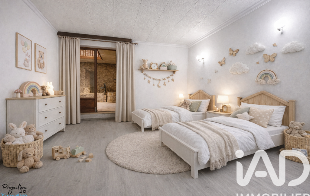 À l’étage, vous trouverez une cuisine aménagée et équipée avec coin repas, deux chambres supplémentaires, une salle d'eau et un WC indépendant. Un magnifique salon/séjour de 34 m² complète ce niveau.
