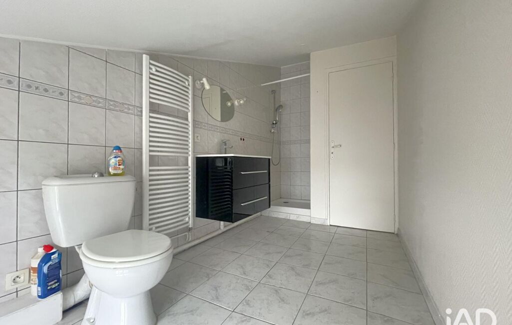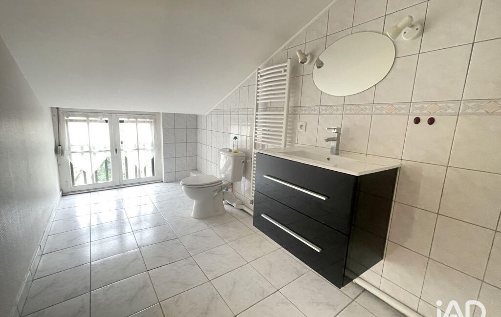À l'étage, le palier dessert deux chambres (dont une avec grenier) et une salle d'eau avec WC.