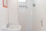 Le couloir dessert une cuisine datant de 2023, ainsi qu'une salle d'eau, un WC séparé et deux chambres (orientées respectivement Est et Ouest).