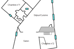 Élevé sur deux niveaux, il propose cependant une grande majorité de sa surface au même niveau dont les 2 chambres principales.