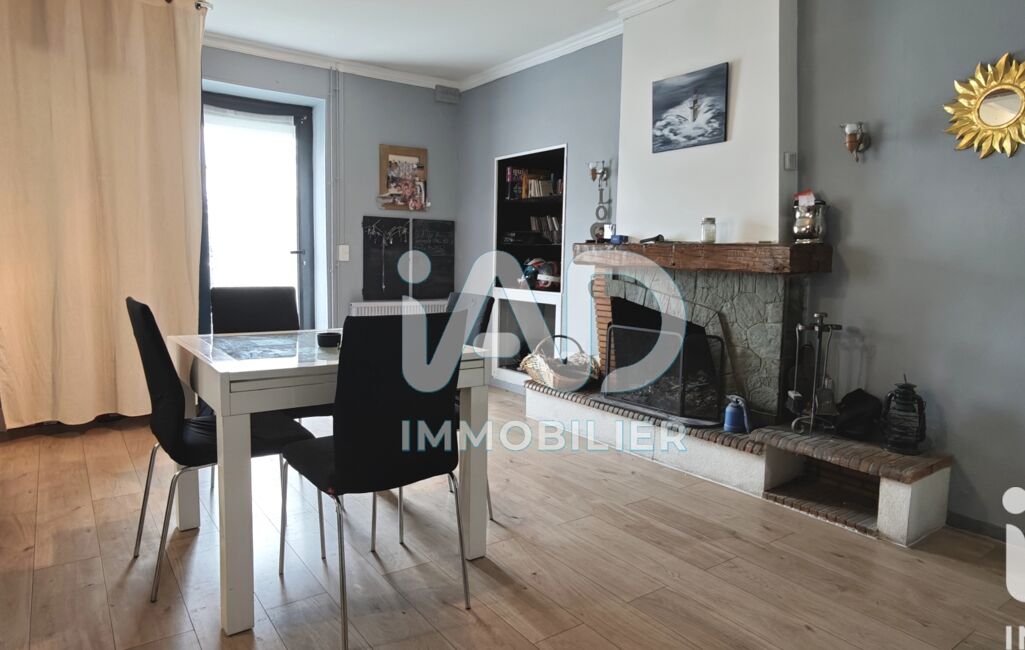 Dès l’entrée, vous découvrez une salle à manger avec cheminée à foyer ouvert, ouverte sur le salon équipé d’un poêle à granulés. Cet ensemble forme une pièce de vie conviviale, baignée d’une atmosphère chaleureuse, où l’on imagine facilement les repas en famille et les soirées d’hiver au coin du feu.