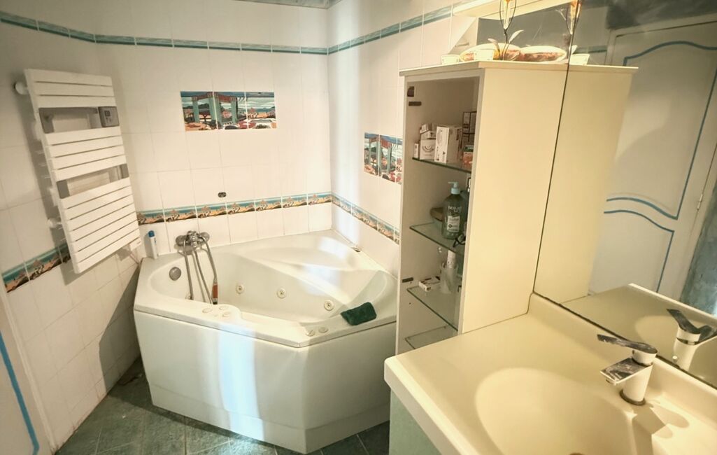 La maison principale, une demeure ancienne de plusieurs siècles spacieuse et lumineuse d'environ 250 m², rénovée en 2001. Cette demeure de caractère vous séduira par ses volumes et ses équipements de confort. Vous trouverez au rez-de-chaussée un salon/salle à manger, une cuisine aménagée et équipée, deux chambres dont une avec salle de bain et baignoire balnéo, un bureau, une lingerie, un WC, une buanderie. A l'étage une grande mezzanine donne sur trois chambres, un WC, une salle de bain avec douche.