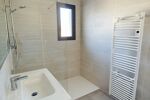 Salle d’eau moderne avec douche à l’italienne et meuble vasque