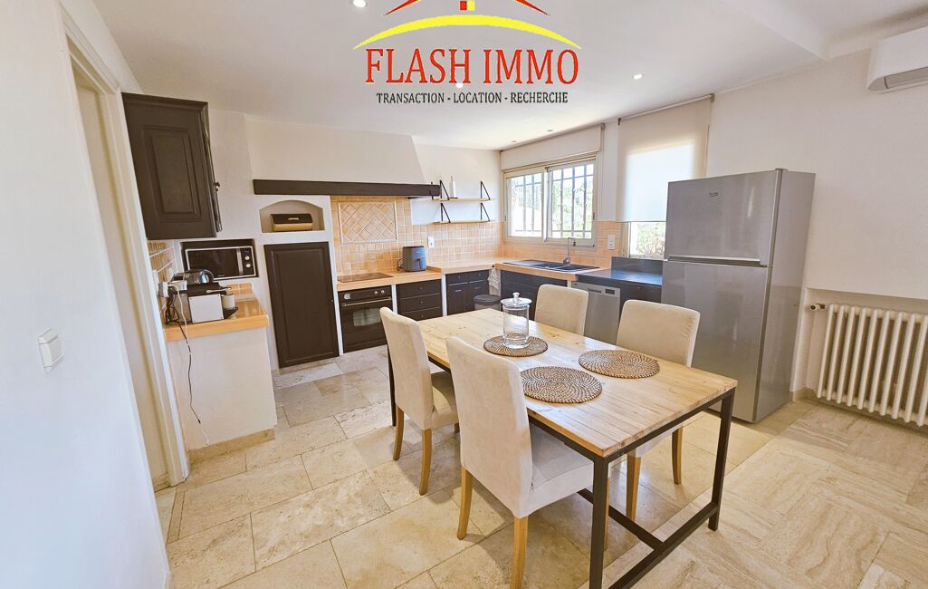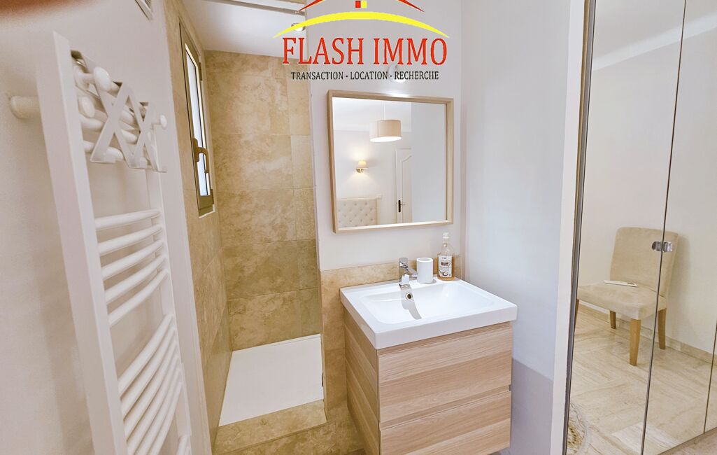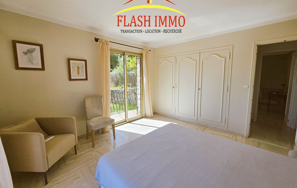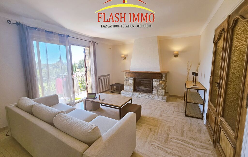 Mougins dans le quartier résidentiel de la Grande Bastide, Magnifique appartement 4p meublé de 124 m2 au 1er étage d'une villa, entièrement rénové et meublé à neuf, il se compose d'une vaste entrée au rdc avec de grand placards, A l'étage un double séjour de 35m2 avec cheminée insert donnant sur une agréable terrasse et un balcon, une cuisine américaine entièrement équipée, un wc invité , 3 chambres avec placards très spacieuses (13, 14 et 15 m2) dont une avec douche et lavabo , une salle d'eau avec armoire lingerie comprenant lave linge et sèche linge . Très belle vue dégagée et calme. 2 parkings extérieurs privatifs, climatisation réversible, double vitrage. Terrasse et jardin privatifs. Accès direct du jardin à la piscine (4x8). Location meublée longue durée 2350 euros cc ( provision eau froide 50 incluse avec régularisation annuelle). caution 4600 euros ( 2 mois de loyer hors charges ) . Libre de suite. location un an minimum. honoraires 1614,47 euros ttc. Pour toutes demandes de renseignements et visites, contactez Isabelle Agence FLASH IMMO LE CANNET .