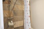 A l' étage se trouve deux chambres spacieuses équipées de placards et une salle de bain avec toilette.