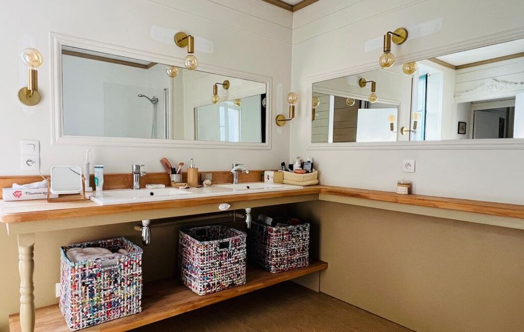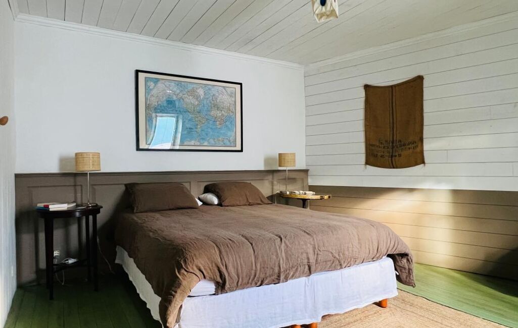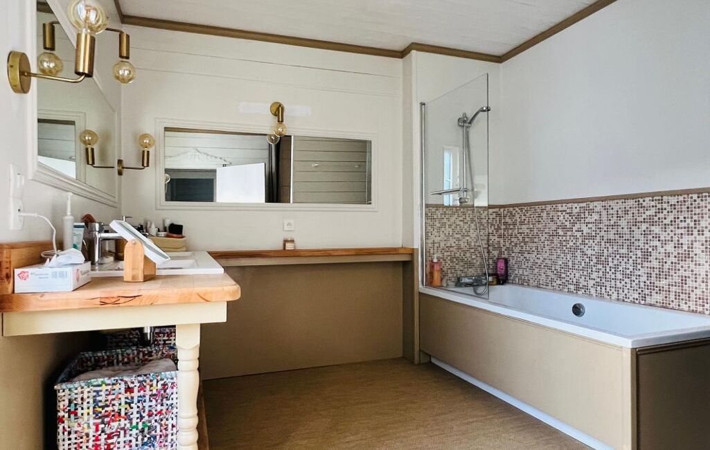 À l'étage, la maison dispose de trois chambres, dont une suite parentale avec salle de bain et dressing.