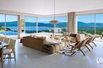 Le niveau principal s’articule autour d’un vaste espace de réception de 141 m² environ, réunissant séjour et salle à manger. L’ensemble est baigné de lumière grâce à de larges baies vitrées et s’ouvre directement sur les terrasses et la piscine, face à la mer.
