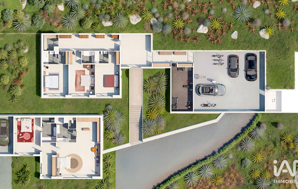 Développée sur deux niveaux, la villa offre 599 m² environ de surface habitable, complétés par de larges terrasses, des annexes et une maison d’invités indépendante. L’architecture, contemporaine et élégante, privilégie la lisibilité des volumes, les perspectives et l’ouverture permanente sur l’extérieur.