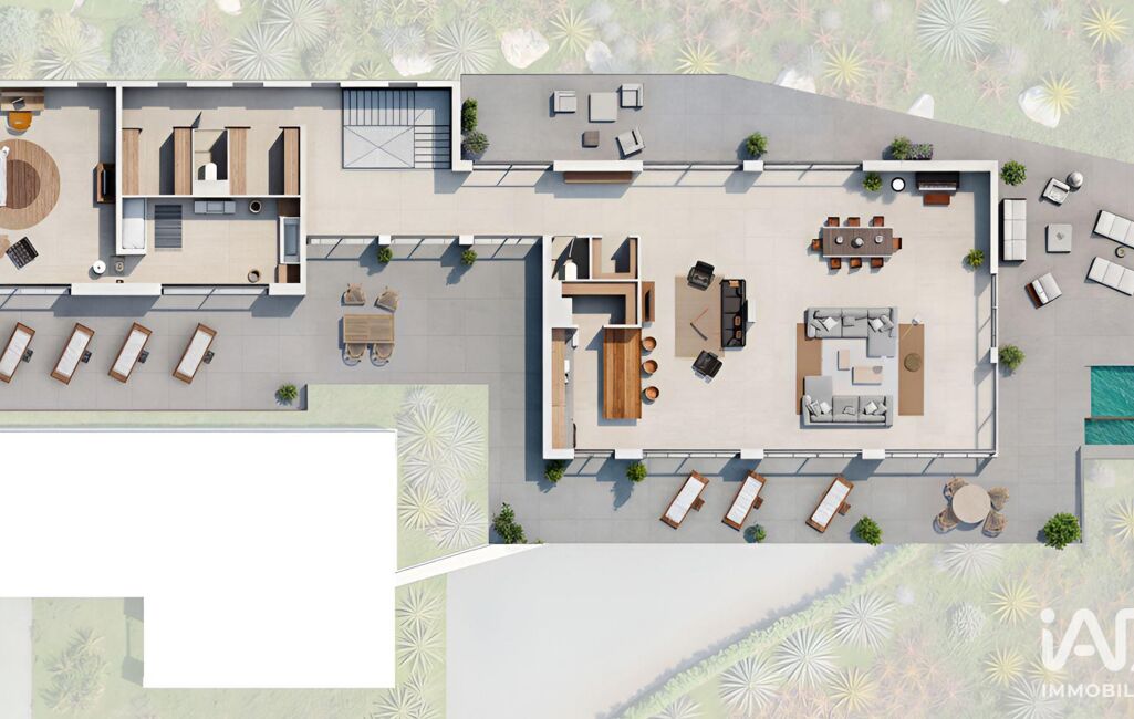 Les espaces de vie prolongent naturellement l’intérieur vers l’extérieur, offrant une véritable continuité entre terrasses, jardin et piscine.