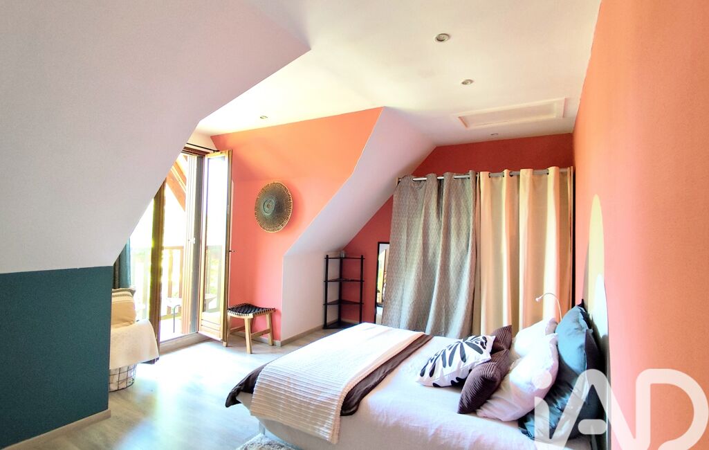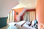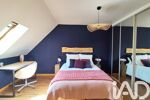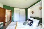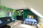 A l'étage, un bel espace ouvert donnant sur un balcon avec vue sur la forêt sert à ce jour de chambre pour recevoir (anciennement cloisonnée). Deux spacieuses chambres supplémentaires avec rangements et salle d'eaux privatives offrent un confort et une dépendante à chacun de ses habitants.