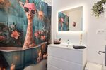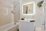 Une salle de bains entièrement refaite à neuf et WC séparés.