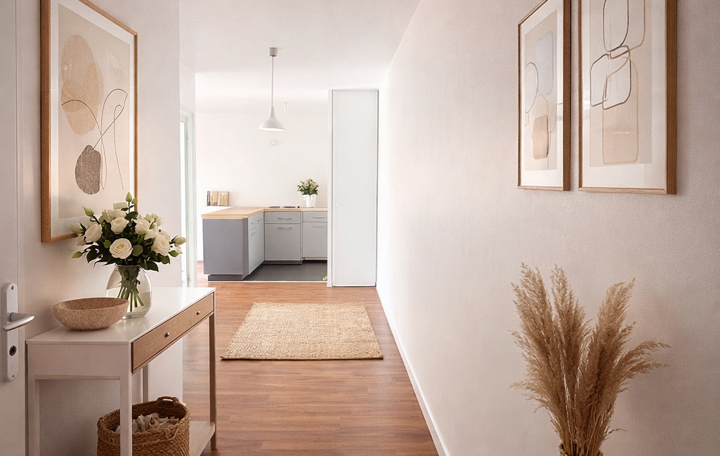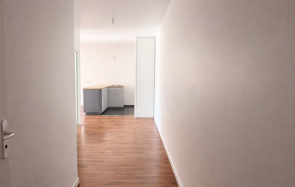 une cuisine ouverte sur un séjour convivial, donnant accès à un agréable balcon exposé plein sud, idéal pour profiter des beaux jours et d’une vue dégagée.