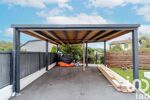 À l’extérieur, vous bénéficierez d’un carport d’environ 30 m², d’un espace de stationnement goudronné et sécurisé par un portail électrique.