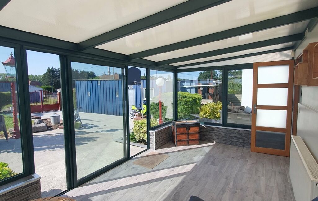 Une véranda ouverte sur le jardin et disposant d'un système de chauffage, vous permettra de profiter tout au long de l'année.