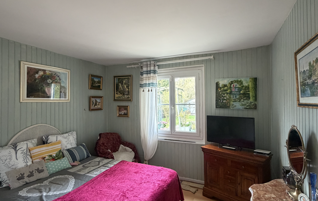 L’annexe indépendante comprend une pièce de vie avec cuisine, une chambre et une salle de bain, offrant un espace idéal pour recevoir, pour un adolescent ou pour un projet locatif.