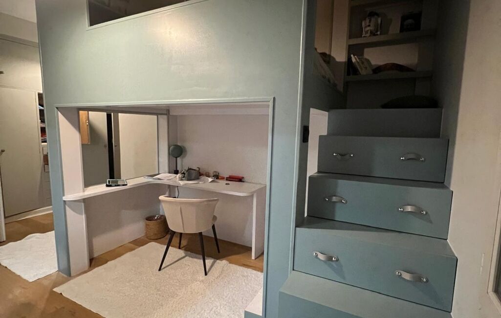Quant au 1er étage, niché dans les combles aménagés, vous serez charmé par la grande Mezzanine, son coin lecture avec sa vue plongeante sur le séjour, un bureau et sa chambre. (possibilité de création d'une chambre supplémentaire)