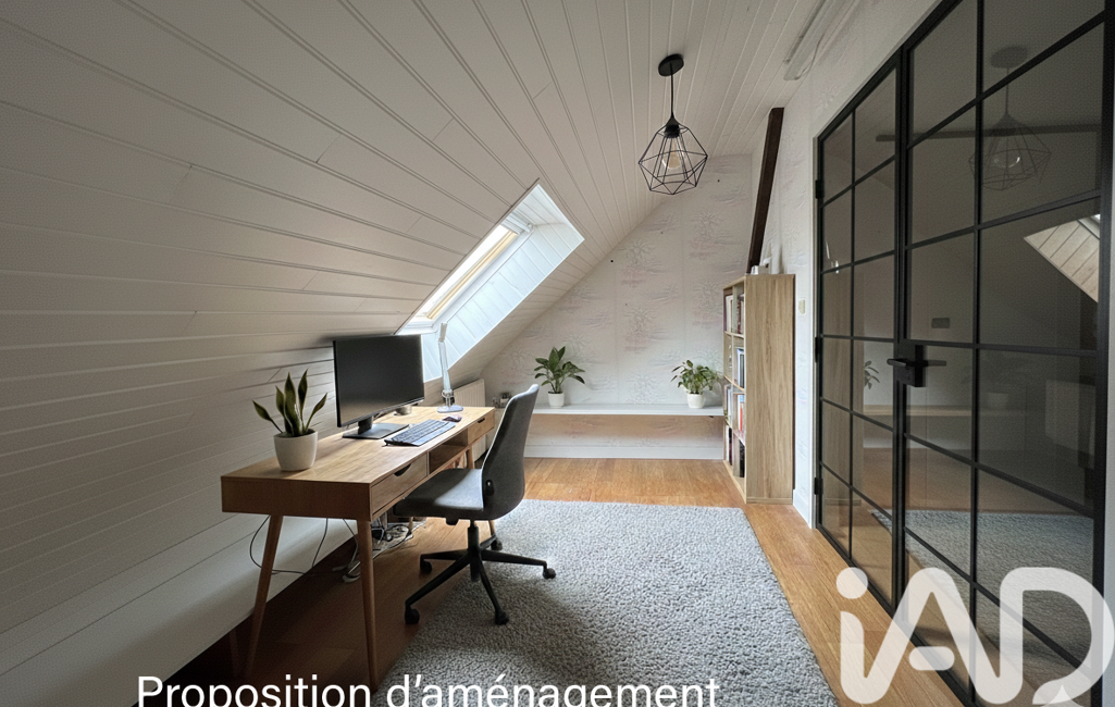 A l'étage, un palier dessert une chambre avec placards, un bureau, une salle d'eau et un wc indépendant.