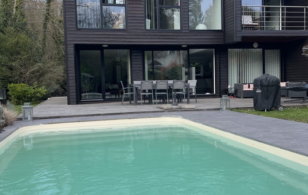 Superbe maison d’architecte à ossature bois, construite en 2011, développant environ 200 m² au sol, offrant 3 à 4 chambres, édifiée sur un terrain de 495 m².