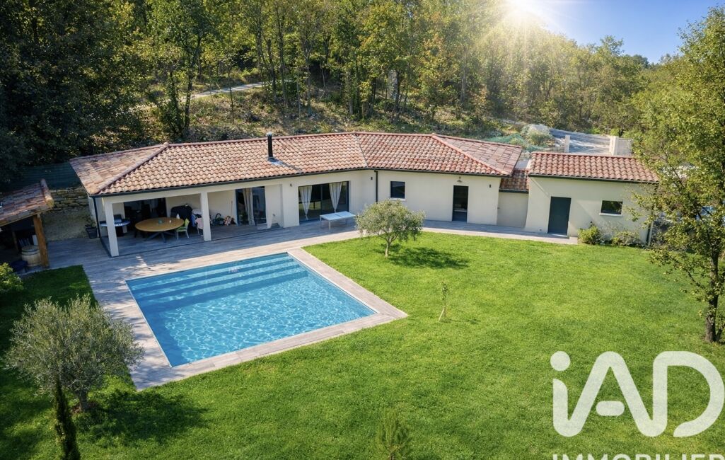À l’extérieur, vous profiterez d’une superbe terrasse de 120 m², dont une partie couverte, ainsi que d’une piscine, d'une cuisine couverte avec son four à pizza, le tout dans un environnement verdoyant et une vue exceptionnelle