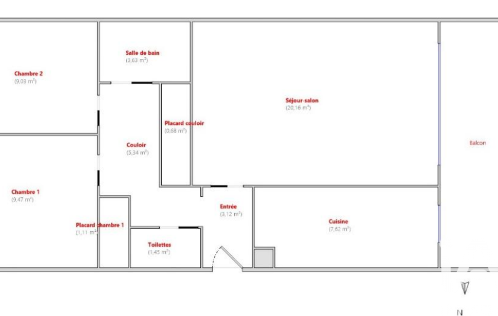 - Surface habitable : 62 m²