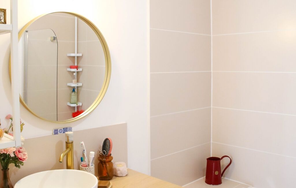 Salle de bain rénovée avec baignoire