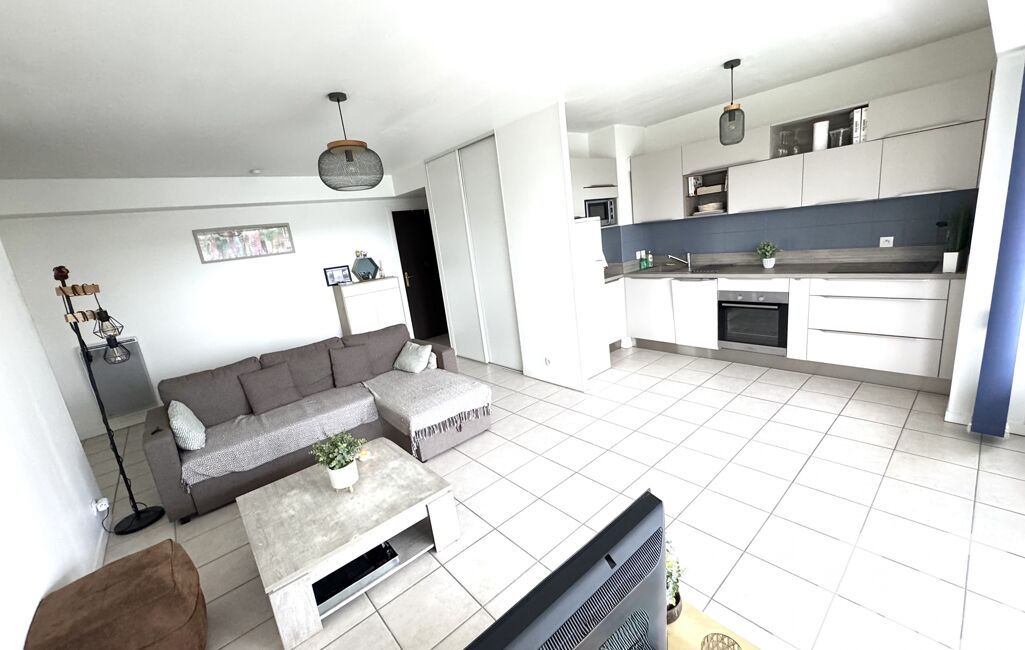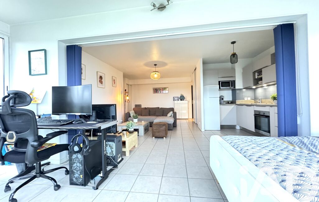 Derrière ses 61,40 m² parfaitement agencés, cet appartement réserve une vraie surprise : une pièce de vie de plus de 43 m², un volume exceptionnel pour un T2, digne d’un T3.