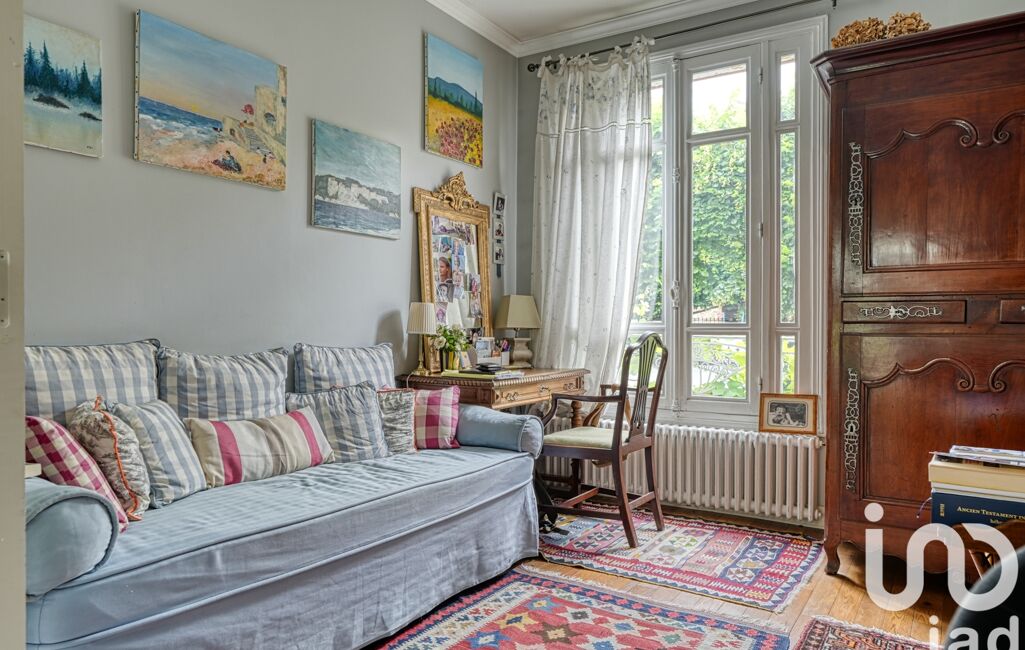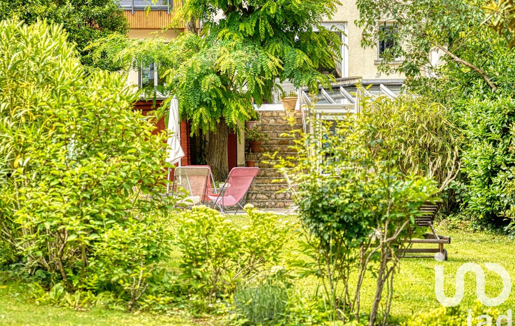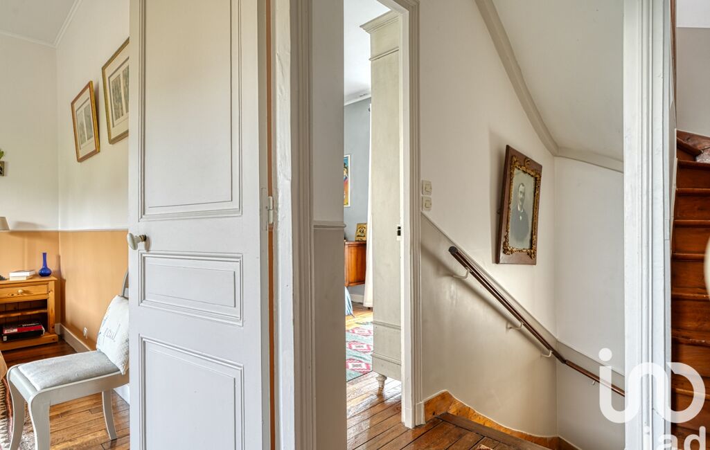 iad France - Emilie SURREL vous propose: POISSY CENTRE - AU CALME ABSOLU, à 2 minutes à pieds du centre ville et nichée dans un écrin de verdure, magnifique meulière de 184 m2. 5 chambres.