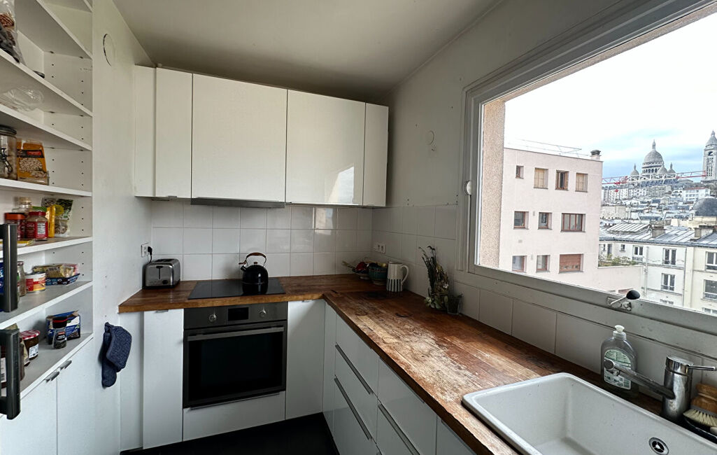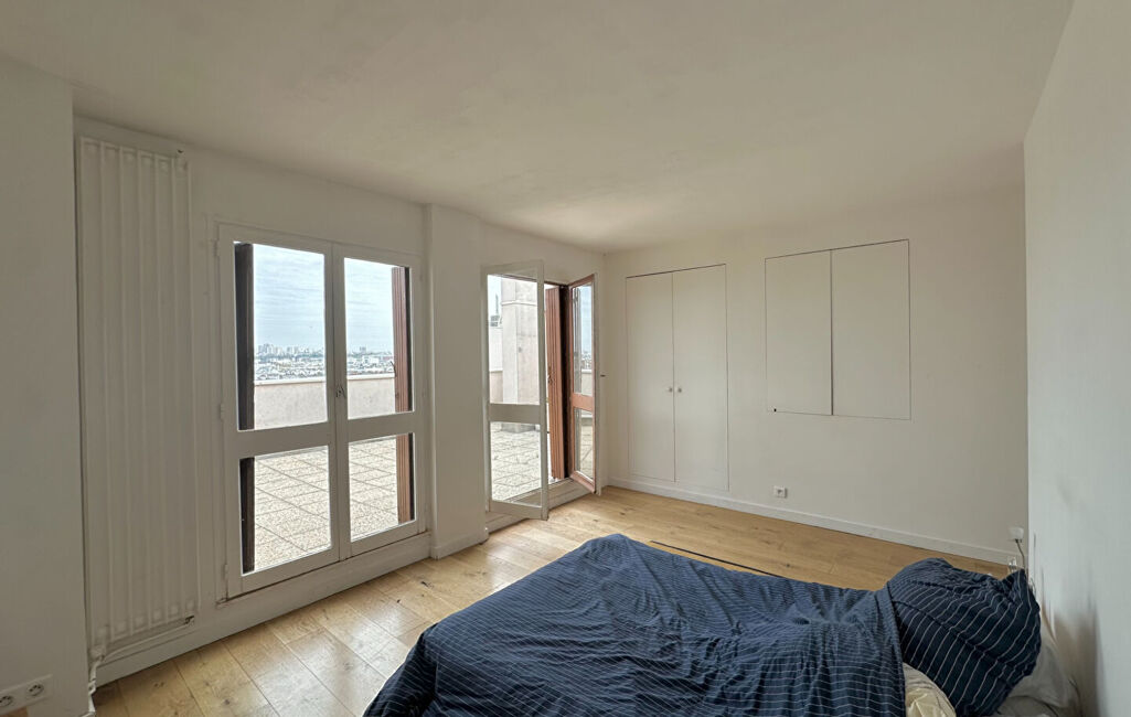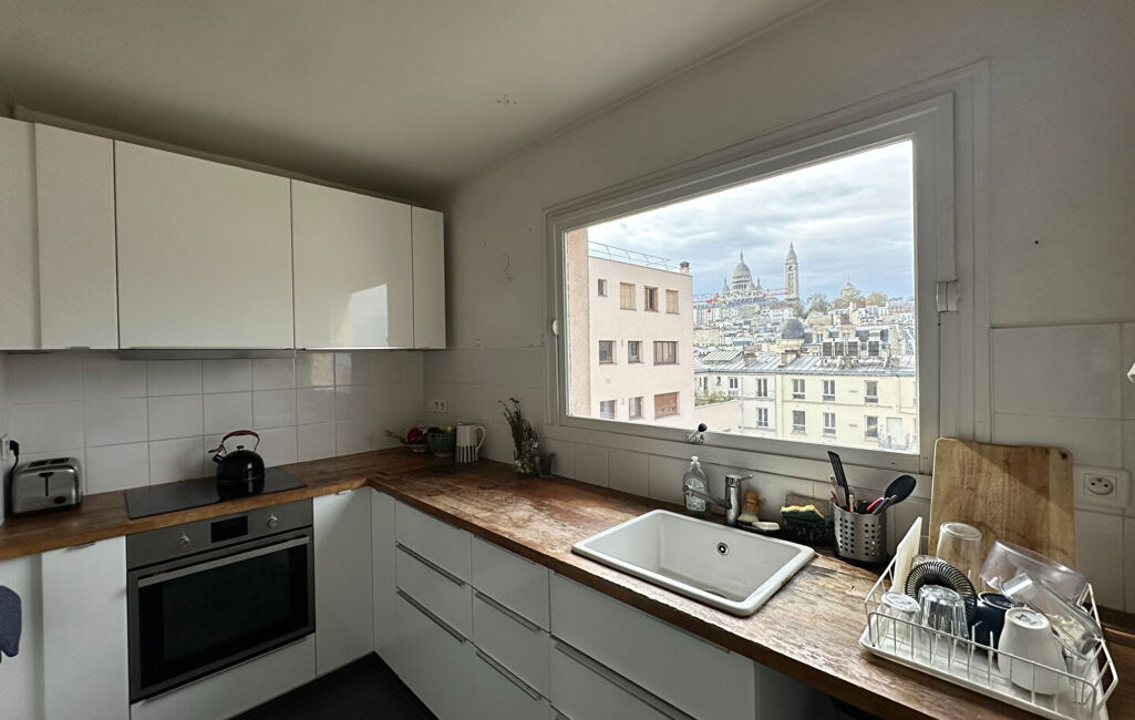 Découvrez ce bien rare aux volumes généreux et au fort potentiel. Situé aux 8eme et 9eme étages (dernier étage) d'une résidence bien entretenue avec gardien, ascenseur et accès PMR, cet appartement traversant Est/Ouest bénéficie d'un environnement calme côté cour et jardin, sans aucun vis-à-vis. L'immeuble dispose également d'un local à vélos. D'une surface de 87 m² loi Carrez (106,5 m² pondérés), il se compose d'une entrée, d'un séjour lumineux de 20,5 m² avec un grand espace de rangement fermé et éclairé pouvant faire office de dressing , ouvrant sur une terrasse de 15,5 m², d'une cuisine indépendante aménagée et équipée avec une superbe vue sur le Sacré-Coeur , d'une chambre avec rangements, d'une salle de bains et d'un WC séparé. Un bel espace de rangement sous l'escalier ainsi qu'une bibliothèque intégrée complètent ce niveau. À l'étage supérieur, vous trouverez deux chambres dont une spacieuse de 17 m² avec deux grands placards, une salle d'eau ainsi qu'une seconde terrasse exceptionnelle de 24,5 m² offrant une vue dégagée sur Paris. (4.21 % d'honoraires TTC à la charge de l'acquéreur.)