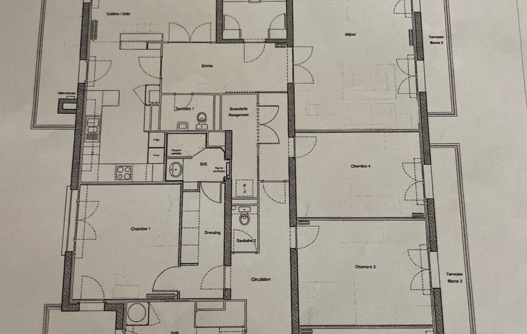 La partie nuit distribue 4 chambres dont une suite parentale avec sa terrasse, une salle d'eau, 1 salle de bain et des dressings. Un agencement très fonctionnel.
