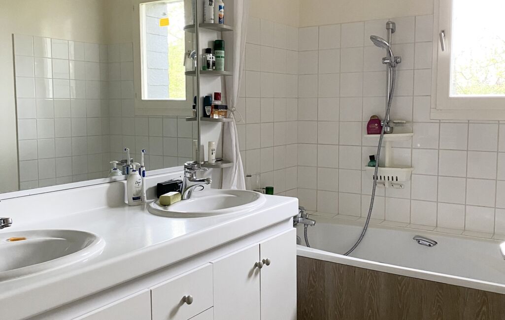 Au premier demi-niveau, vous trouverez deux chambres spacieuses, une salle de bains double vasque , ainsi qu'un WC indépendant. Un accès au grenier mansardé de 49m2 au sol reste aménageable selon vos envies.