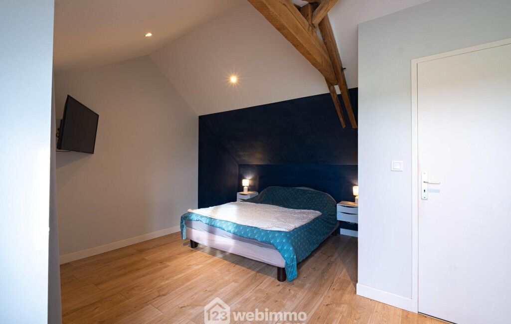 Elle comprend un atelier ainsi qu'un bureau (ou chambre d'amis) dans un bâtiment annexe, ainsi qu'un vaste espace indépendant idéal pour un artisan ou une activité professionnelle.