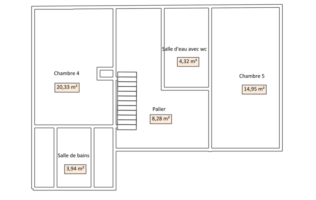 À l'étage, 2 autres chambres offrent de magnifiques volumes qui sauront vous séduire j'en suis sure. Vous aurez le choix entre une suite parentale de plus de 20 m² avec un coin salle de bains ou une autre chambre d'environ 15 m². Entre les 2, vous pourrez profiter d'un palier pouvant servir de salle de jeu, coin salon ou bureau pour le télétravail par exemple. Et pour finir, cet étage dispose d'une salle d'eau avec wc.