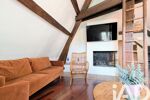 - séjour avec cheminée à foyer ouvert et petite mezzanine