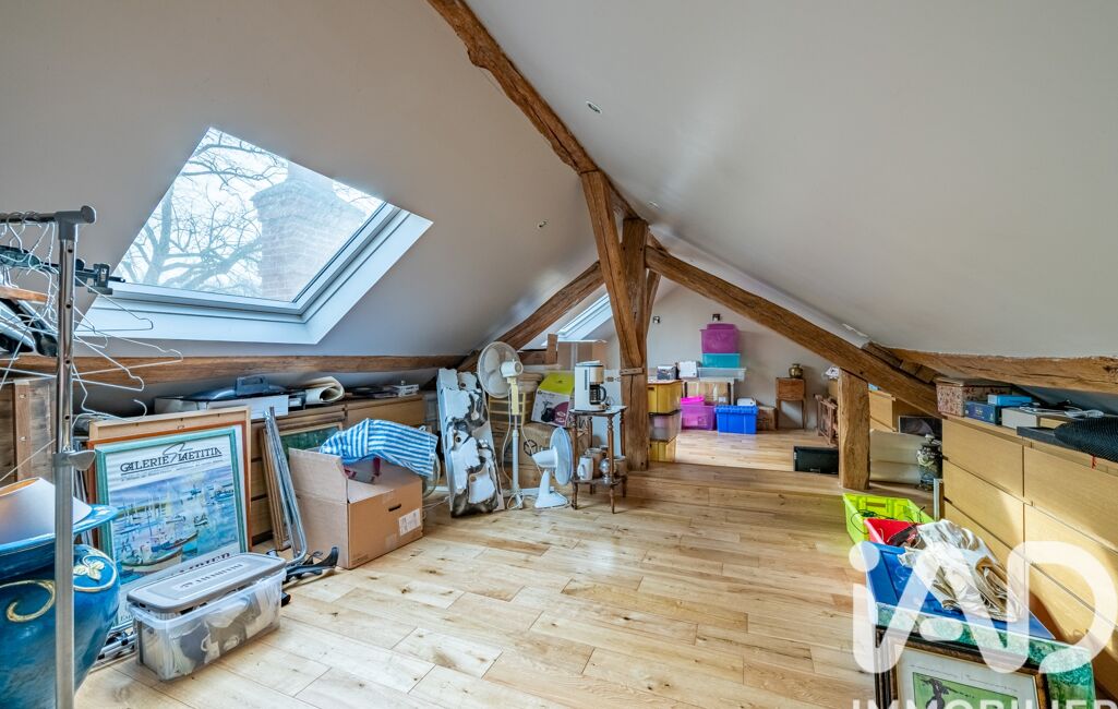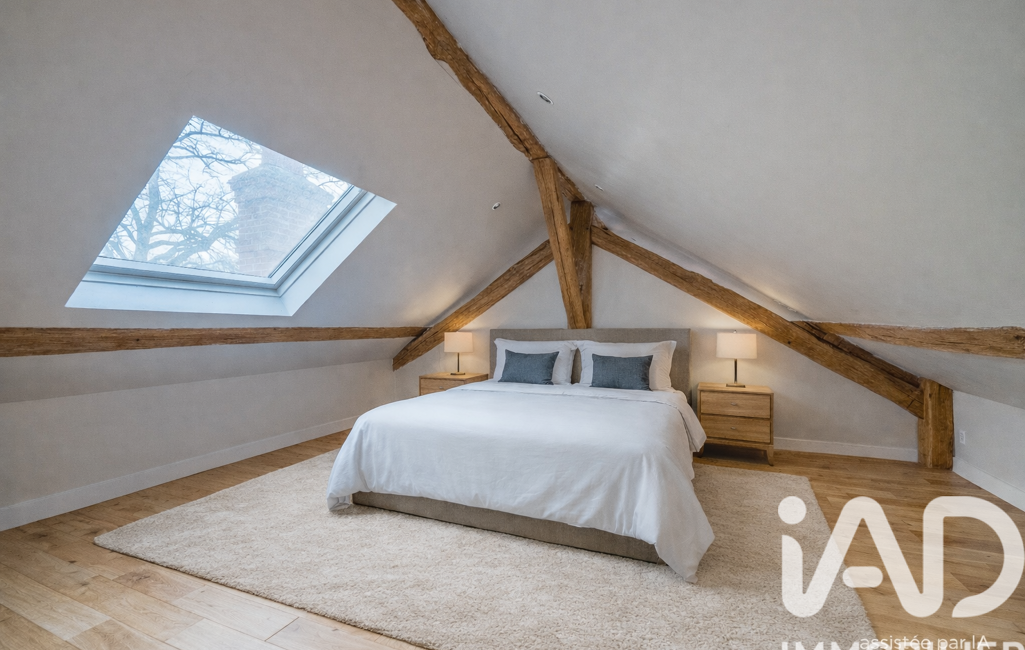 À l’étage, une pièce palière d’environ 50 m² avec plafond cathédrale dessert une salle de bains et trois chambres, dont une avec salle d’eau.
