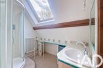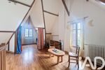 Étage : combles aménagés offrant de beaux volumes, avec charpente apparente, une grande mezzanine (possibilité de créer une troisième chambre), deux chambres avec rangements, salle d’eau et WC séparés.
