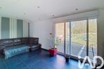 un vaste salon-séjour / salle à manger lumineux, avec accès direct à une grande terrasse et au jardin,