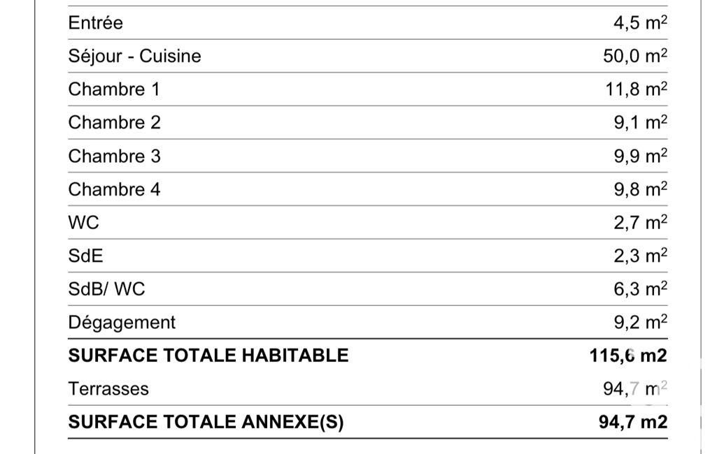 - Surface habitable : 115 m²