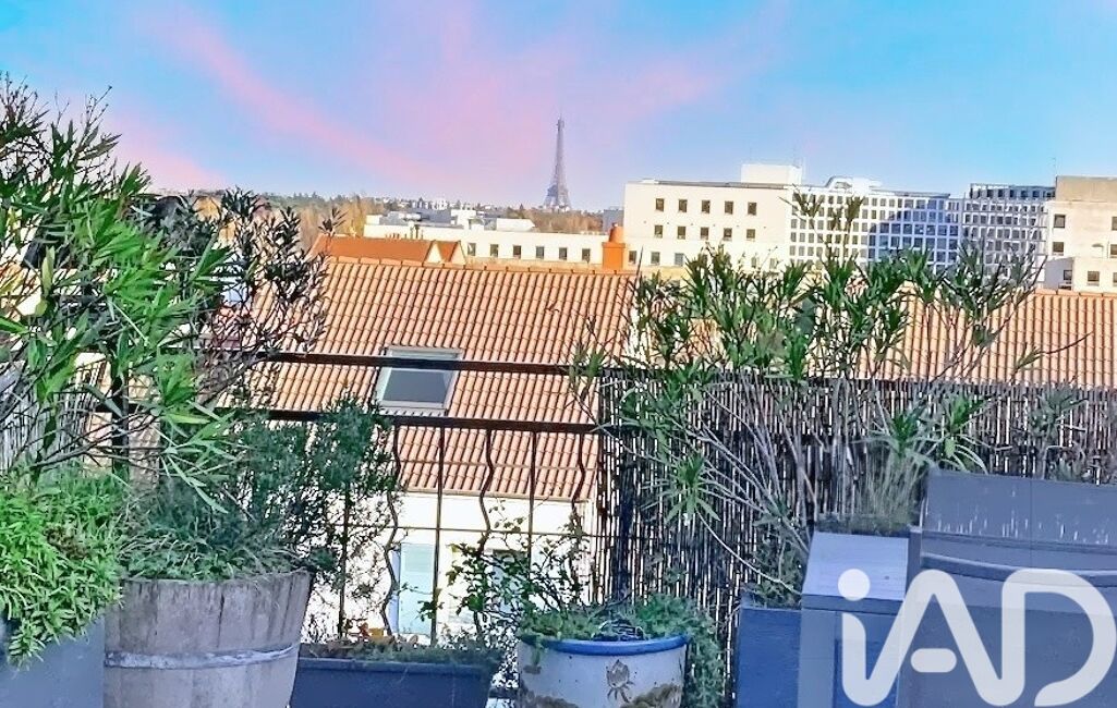 Ce bien propose une configuration rare et un grand potentiel d’aménagement intérieur. Elle est idéale pour une famille ou un investisseur. L’espace principale (env. 85 m²carrez en duplex) se compose d’une vaste pièce de vie de 40 m² avec cuisine ouverte contemporaine donnant sur une terrasse sans vis-à-vis, orientée Est, avec vue sur la tour Eiffel, d’un bureau (ou chambre d’enfant), de WC d’invités, et de deux chambres à l’étage avec une salle de bains et WC.