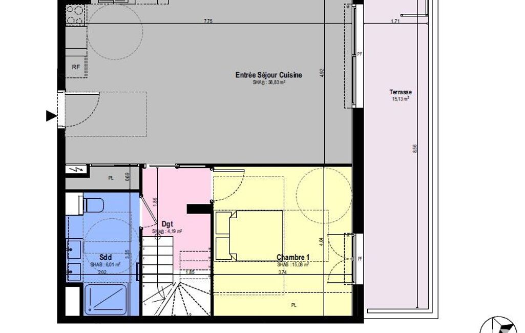 - Surface terrasse : 15 m²
