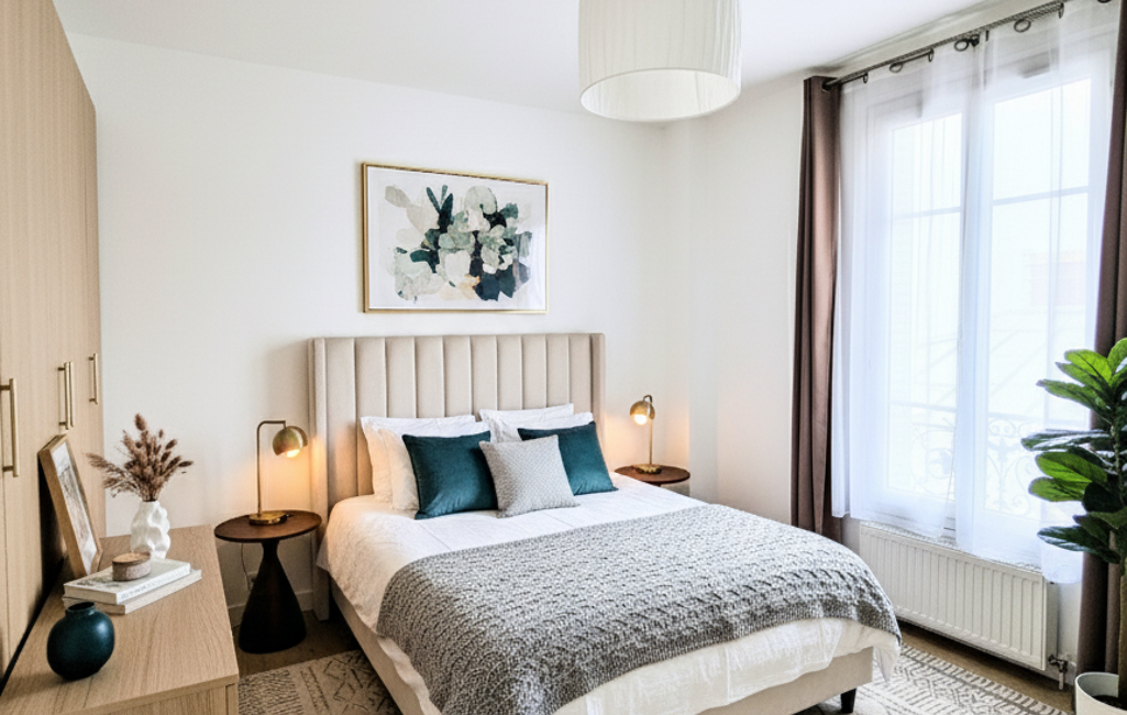 situé à deux pas de la gare de Courbevoie et des commerces.