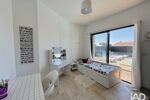 À l'étage : un vaste salon séjour avec cuisine ouverte très lumineux, une suite parentale, un WC séparé ainsi qu'un balcon terrasse offrant une jolie vue dégagée et un aperçu mer.