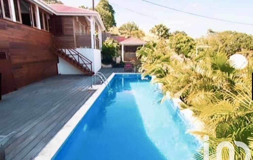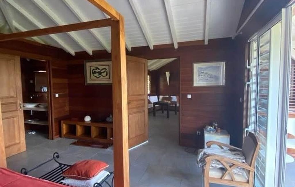 iad France - Veronique Paolpi vous propose: Les Saintes, petit paradis, avec une des plus baie de rêve ! Terre-de-Haut, au cOEur de la nature préservée des Caraïbes. Cette Villa de prestige de 120 M2 , entièrement meublée , en bois rouge, double bardage, très belles finitions , 3 pièces composées d'un salon de 60 M2 , deux grandes chambres de 30 M2 avec vue mer, avec chacune sa salle d'eau, double vasques , son WC indépendant, son dressing, 2 balcons ouvrant sur la mer , une entrée, une piscine carrelée de 10 X 2,5 M2 , local technique atelier sous la maison de 15 M2 , un Carbet 9 M2 face a la piscine, terrain clôturé et arboré , ses plages, le centre avec ses boutiques colorées et ses restaurants typiques les pieds dans l'eau