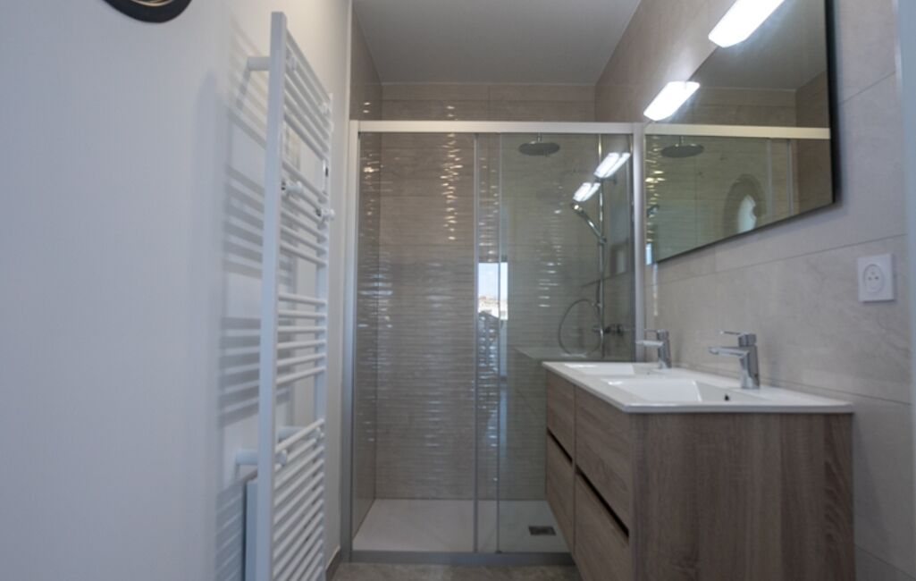 L’espace nuit propose deux chambres, dont une élégante suite parentale, ainsi que une salle de bain, pensées pour offrir confort, intimité et fonctionnalité.
