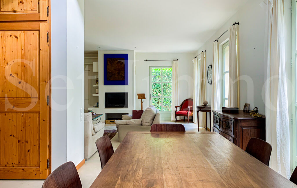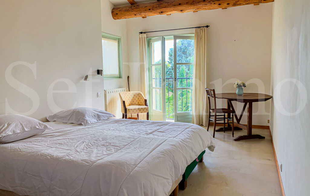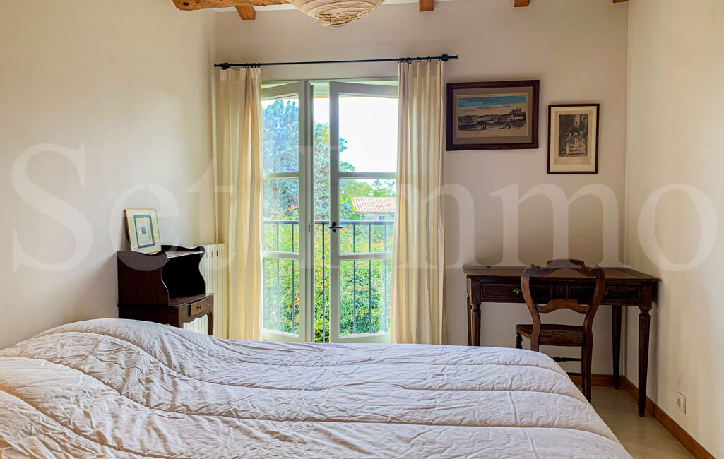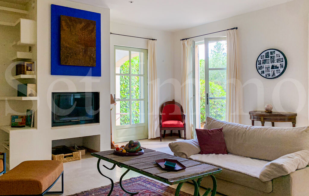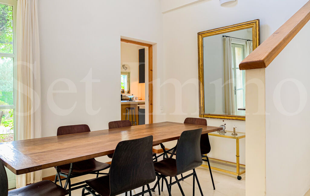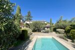 Cette lumineuse villa de type Bastide, berceau d'une famille d'artistes, s'ouvre sur un jardin arboré (oliviers, cistes, cyprès florentins et autres essences méditerranéennes) et est bordée de terrasses ombragées de jasmin. Le terrain, clos de pierres sèches, est d'une superficie de 1659m² et accueille une piscine maçonnée.