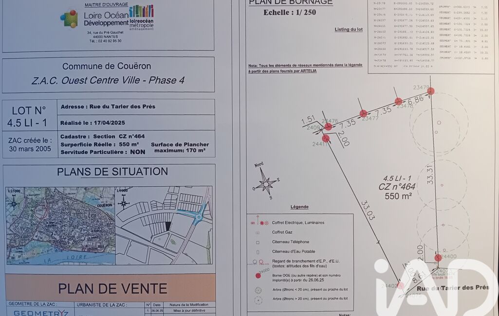 iad France - Stéphane Geffroy vous propose: Rare sur le marché, ce terrain à bâtir de 550m², situé à Couëron dans le nouveau quartier Ouest Centre Ville, offre une occasion unique de construire la maison de vos rêves dans un cadre verdoyant et calme.