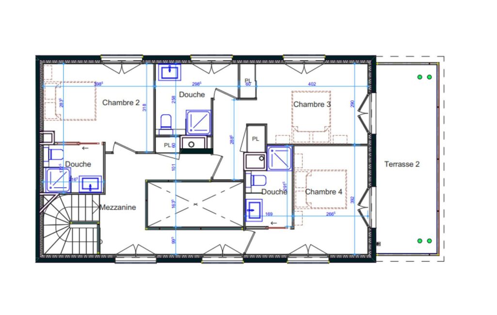 - Quatre chambres, chacune avec sa salle d'eau, et une master suite.